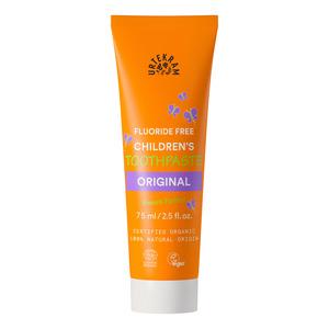 Urtekram Children's Original Fluoride Free Toothpaste er en skånsom tannkrem for barn, laget med naturlige ingredienser. Den inneholder små slipekorn fra naturlig kritt som effektivt renser tennene uten å skade emaljen. Aloe vera, myrra og magnoliabarkekstrakt beskytter tannkjøttet og bidrar til en sunn munnhygiene.