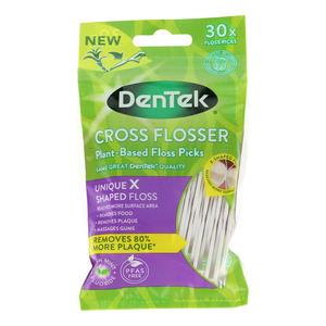 DenTek ECO Cross Flosser er en avansert flosser som fjerner 80 % mer plakk mellom tennene enn tanntråd på rull. Den unike X-formede designen gjør at tanntråden kommer nærmere tennene og dekker et større overflateareal for mer effektiv rengjøring. Den ekstra sterke, strukturerte tanntråden bøyer seg rundt tennene for å fjerne plakk og matrester og masserer tannkjøttet skånsomt.