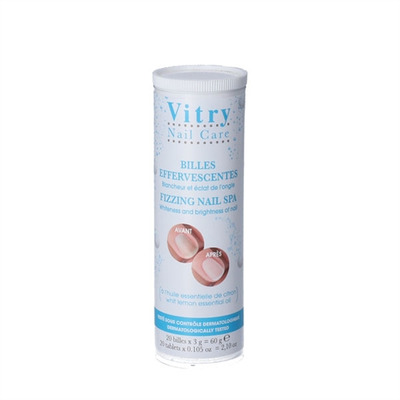 Er du lei av gulnende negler, flassende neglebånd og skitne fingre? Da bør du prøve Vitry Fizzy Nail Spa Whitening Balls. Disse brusende tablettene bleker neglene, mykgjør neglebåndene og rengjør fingrene.