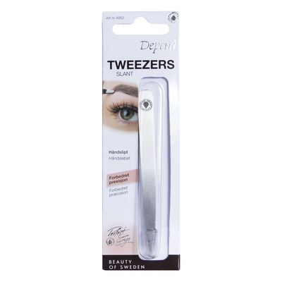 Depend Tweezers Slant er en pinsett i rustfritt stål som er perfekt til å plukke og forme øyenbrynene. Pinsetten er håndslipt i fire vinkler med skrått blad for best mulig grep. Den gir presisjon og effektiv fjerning av uønskede hår.