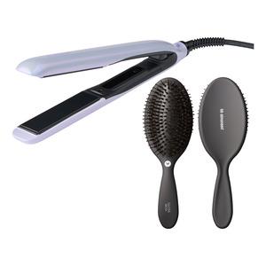 Den medfølgende HH Simonsen Gloss Brush kombinerer fleksibel bust og ekte villsvinbust for å fordele hårets naturlige oljer og gi ekstra glans. Børsten er ergonomisk utformet med en 3D-konveks pute for optimal hodebunnsmassasje. Glattejernet leveres med en varmebestandig oppbevaringspose.