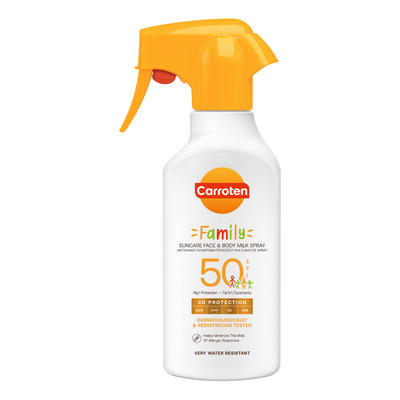 Carroten Family Face & Body Milk Trigger SPF 50 gir effektiv solbeskyttelse for hele familien