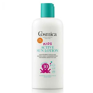 Cosmica Sun Lotion Kids er en solkrem spesielt utviklet for barnas sensitive hud. Kremen gir høy beskyttelse mot solens UVA- og UVB-ståler. Den har en god konsistens som ikke føles klissete og som raskt trekker inn i huden. Solkremen kan påføres på våt hud, og er ekstra vann- og sandresistent.