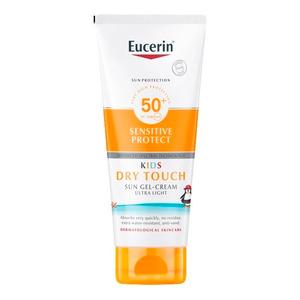 Eucerin Sun Kids Dry Touch Gel-Cream SPF50+ er en solkrem som er utviklet for å beskytte barns følsomme hud mot skadelige UVA- og UVB-stråler. Den inneholder Licochalcone A, en antioksidant og betennelsesdempende ingrediens som beroliger huden og beskytter den mot skader fra frie radikaler. Glycyrrhetinsyre støtter hudens egen DNA-reparasjonsmekanisme, noe som reduserer risikoen for langtidsskader. Kremen er egnet for babyer fra 3 måneder og er spesielt utviklet for sensitiv hud.