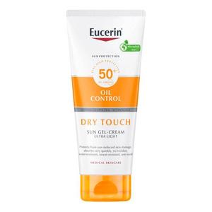Eucerin Sun Gel-Cream Dry Touch Sensitive Protect SPF50+ er en ultralett solkrem som er utviklet for å beskytte sensitiv, fet og akneutsatt hud mot solens skadelige stråler. Den avanserte spektralteknologien kombinerer bredspektrede og fotostabile UVA/UVB-filtre med Licochalcone A, som nøytraliserer frie radikaler forårsaket av UV-stråler og høyenergisk synlig lys (HEVIS). Formelen inneholder også Glycyrrhetinic Acid, som støtter hudens egen DNA-reparasjonsmekanisme. Med Oil Control-teknologi og matterende pigmenter etterlater denne gelkremen huden med en øyeblikkelig tørr finish uten å etterlate rester. Den absorberes raskt, er ekstra vannfast, svettebestandig og reduserer sannsynligheten for at sand fester seg på huden. Passer for alle hudtyper, inkludert sensitiv, fet og akneutsatt hud.