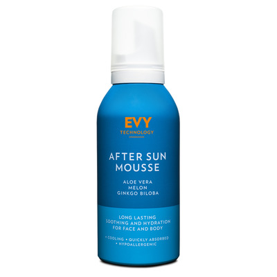 Evy Aftersun Mousse lager en solbeskyttende barriere i det øverste hudlaget og gir hudens naturlige forsvar ekstra styrke. Moussen absorberes raskt og etterlater derfor ikke huden fettete og skinnende. Huden blir intensivt fuktet i opptil 12 timer ettersom aktive ingredienser treger inn i huden. Dette produktet er multifunksjonelt da det kan brukes til både hud og hår uten å gjøre det trist og klebrig.