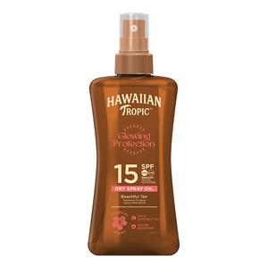 Hawaiian Tropic Protective Dry Spray Oil SPF15 er en sololje med middels solbeskyttelse og en ikonisk tropisk duft