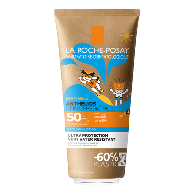 La Roche-Posay Anthelios Kids Wet Skin har en svært høy beskyttelse med SPF50+, som kan brukes til både kropp og ansikt. Solkremen er spesielt egnet for barn med sensitiv hud og/eller solintolerant hud. Den er ikke klissete på huden da den absorberes veldig raskt, og etterlater ingen hvite merker.