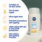 Nivea Sun UV Face Specialist Invisible Daily Fluid SPF50+ er en banebrytende, ultralett solkrem for ansiktet som gir kraftig beskyttelse mot solens UVA/UVB-stråler samtidig som den hjelper deg med å bekjempe for tidlig aldring av huden. Takket være den naturlige antioksidanten Licochalcone A gir Nivea Sun UV Specialist mer enn bare overfladisk beskyttelse ved å aktivere hudens eget forsvar og beskytte mot oksidativt stress. Den milde formelen beriket med niacinamid er utviklet for å være usynlig på huden, uansett hudtone. Med sin ikke-fete og ikke-klebende konsistens etterlater solkremen ingen hvite rester og sørger for en 8-timers matt effekt for en hud som ser sunn og ikke skinnende ut.