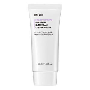 Rovectin Intense Moisture Sun Cream SPF 50+ PA++++ er en effektiv solkrem som beskytter huden med sinkoksid og titandioksid. Denne mineralbaserte formelen er rik på naturlige fuktighetsbevarende stoffer og antioksidanter som forebygger uttørking og miljøskader. Solkremen er beriket med panthenol (vitamin B5), som bidrar til å styrke hudens naturlige fuktbarriere.