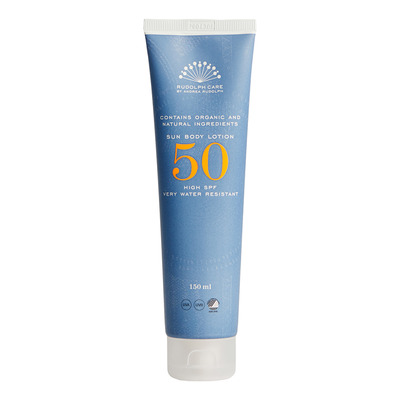 Rudolph Care Sun Body Lotion SPF50 er en effektiv solkrem som skånsomt beskytter huden din mot skadelige UVA- og UVB-stråler. Solkremen er enkel å påføre og etterlater ingen klissete, fete eller hvite merker. Den er rik på naturlige, økologiske ingredienser som tindved, kamille og agurkekstrakt som gir næring, fuktighet og pleie til huden din når du er ute i solen. Tindved tilfører antioksidanter, kamille har en beroligende effekt og agurkekstrakt gir intens fuktighet.