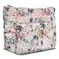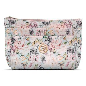 Gillian Jones' kosmetikkveske med 3 rom og rosa storblomstertrykk er laget av 100 % resirkulert plast