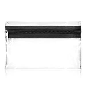 En minimalistisk toalettmappe / kosmetiskveske for reiser. Det transparente gir en god mulighet til å se hva som er i posen.Lukkes med glidelås.