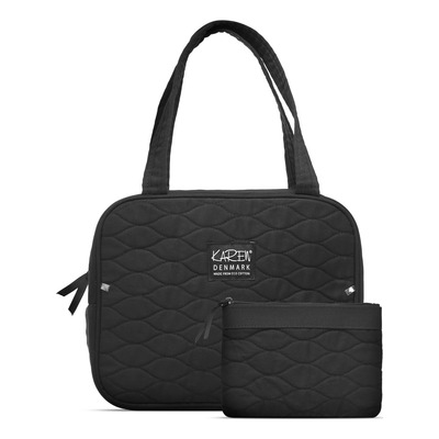 Dette 2-delte toalettmappesettet fra Karen består av en liten sminkeveske som passer til mindre og skjøre ting som du ønsker å ta ekstra godt vare på. I tillegg består settet av en stor og romslig toalettmappe med plass til alle nødvendige produkter. Begge veskene har et klassisk svart design med Karen-logo på forsiden. Posene er laget av økologisk bomull, og den store toalettmappen har fire innvendige lommer og to håndtak som gjør den enkel å henge opp og gir deg god oversikt over produktene dine.