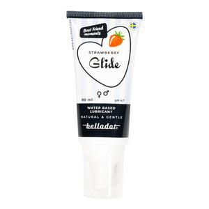 Belladot Strawberry Flavoured Lubricant er et vannbasert glidemiddel med en behagelig jordbærsmak og duft. Den er utviklet for å øke komforten under intime stunder og er skånsom mot den sarte huden i intimområdet. Glidemiddelet er pH-balansert med en verdi på 4,7 og føles mykt og behagelig å bruke.