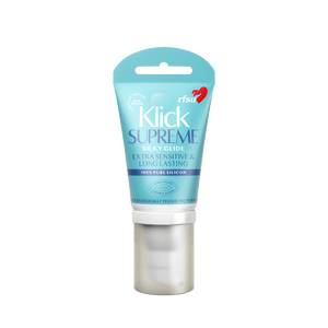 RFSU Klick Supreme Glide er et glidemiddel basert på 100 % silikon, som er naturlig for kroppen og skånsomt mot underlivet. Forskjellen fra et vannbasert glidemiddel er at den er drøyere i bruk, glideeffekten varer lenger og den gir deg en silkemyk følelse. Flasken har innebygget pumpe for enkel dosering. Kan brukes både med og uten kondom. Noen dråper er nok for å gi ekstra glideeffekt!