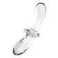 Den gjennomsiktige glassdildoen Satisfyer Double Crystal kan brukes til lek med både varme og kalde temperaturer.