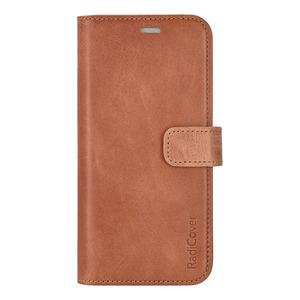 RadiCover Brown Leather Mobile Cover består av to deler: et avtakbart, magnetisk innerdeksel og et ytre flipdeksel. Det indre dekselet beskytter telefonen mot støt og kan for eksempel festes til en bilholder. Det er også kompatibelt med trådløs lading.