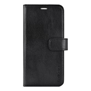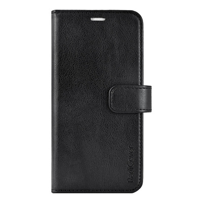 RadiCover Wallet i svart skinn kan brukes som stativ for å se på film eller videosamtaler. Den innebygde anti-strålingsmembranen er plassert i frontklaffen og gir optimal beskyttelse når du snakker med dekselet lukket. Designet er praktisk og enkelt - perfekt for hverdagsbruk.