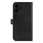 RadiCover Wallet i svart skinn til iPhone 16 Plus kan brukes som stativ, slik at du enkelt kan se film eller ringe videosamtaler. Den innebygde anti-strålingsmembranen er plassert i frontklaffen og gir optimal beskyttelse når du snakker med dekselet lukket. Designet er praktisk og enkelt - perfekt for hverdagsbruk.