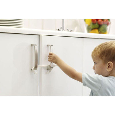 Med en dobbel skaplås kan du sørge for at barnet ditt ikke kommer ned i skuffer og skap som kan inneholde farlige ting som kniver, rengjøringsmidler o.l.. Låsen monteres lett på 2 overflater ved håndtakene plassert ved siden av hverandre.
