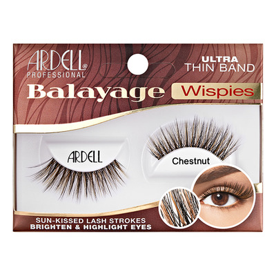 Ardell Lash Balayage Chestnut fremhever øynene dine med vipper inspirert av Balayage, den franske penselstrøksteknikken. Disse vippene har en blandet, flerdimensjonal effekt. Ardell Lash Balayage Chestnut kombinerer myke fargetoner fra blond til brun, satt sammen med svarte fibre for dybde og dimensjon. Denne unike fargekombinasjonen skaper en fantastisk kontrast og gir vippene en illusjon av tykkelse og volum. Perfekt for deg som vil ha en pause fra svarte vipper og se ut som om du nettopp har kommet tilbake fra en solrik ferie.