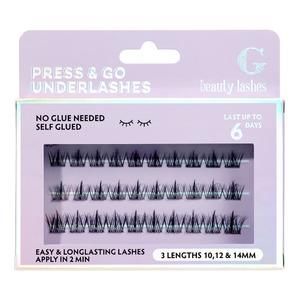 G Beauty Press & Go Underlashes er selvklebende undervipper som gir deg et elegant og naturlig utseende i opptil 6 dager uten bruk av lim. Vippene påføres under dine egne vipper og aktiveres av varmen og fuktigheten i huden din. De fester seg enkelt uten lim og er ideelle for deg som vil ha en flott look med minimal innsats.