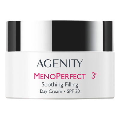 AGENITY MENOPERFECT 3° Day Cream SPF20 er en oppstrammende og fyldig dagkrem utviklet for hud i overgangsalderen, der hormonelle endringer fører til tap av fylde, elastisitet og komfort. Kremen forbedrer hudens fasthet og gjenoppretter volum med sheasmør, FGF1 LMS™-teknologi og rapsoljesteroler.