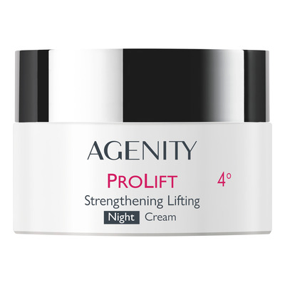 AGENITY PROLIFT 4° Night Cream er en intensivt oppstrammende og styrkende nattkrem for moden hud 55+. Kremen virker om natten for å forbedre hudens tekstur, løfte ansiktskonturene og redusere rynker med avanserte peptider, ceramider og hyaluronsyre.