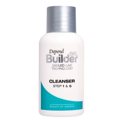 Depend Gel Builder Cleanser er en spesialutviklet væske til bruk før og etter påføring av Gel Builder. Før behandlingen sørger Cleanser for at negleoverflaten er helt ren og fri for fett og støv for optimal vedheft. Påfør produktet på en bomullspad og rengjør neglen grundig. La neglen lufttørke i ca. 30 sekunder uten å berøre overflaten. Dette trinnet erstatter polering og bruk av primer.