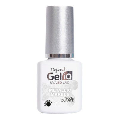 Depend Gel iQ Metallic Marble Pearl Quartz er en effektlakk med Pearl Metallic-finish og marmorert utseende. Lakken kan brukes alene for en jevn og blank overflate, eller kombineres med pensel og Dotting Tool for å skape personlige mønstre. De lysreflekterende pigmentene gir et elegant fargespill og et metallisk utseende.