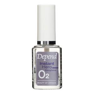 Depend Instant Hero Strengthener er utviklet for negler som har mistet styrke og fleksibilitet. Den danner en usynlig og fleksibel forsterkning som øyeblikkelig beskytter og styrker neglen. Inneholder AHA (alfahydroksysyre) som bidrar til å binde fuktighet og gjenoppbygge neglens struktur. Kan brukes som underlakk eller som base under neglelakk.