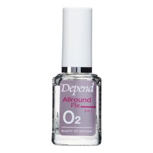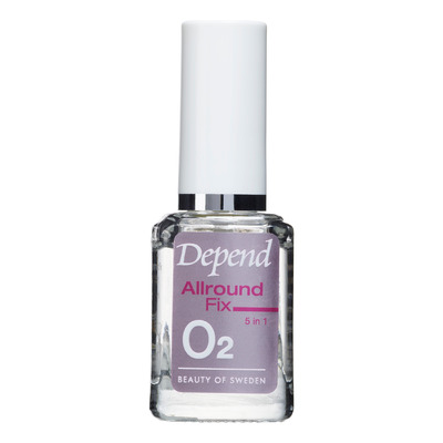Depend Allround Fix 5 in 1 er ideelt for deg som har god neglekvalitet og ønsker en enkel løsning for pleie og beskyttelse. Produktet fungerer som base coat, top coat, strength coat, høyglans og hurtigtørkende finish i ett. Det gir et vakkert resultat og forlenger holdbarheten på manikyren din. Inneholder UV-beskyttelse og AHA for å gjenoppbygge og holde på fuktigheten i neglen.