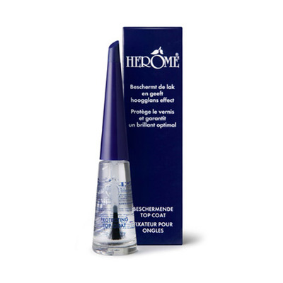 Med denne Herome Protecting Top Coat unngår du å skade neglene eller neglelakken, da topplakken legger et hardt beskyttende lag på neglene. Den transparente Top Coat er både beskyttende og vannavvisende, samtidig som den frisker opp neglelakkens farge. Topplakken gir en vakker glans, slik at neglene dine ser vakre og velpleide ut.
