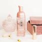 Aqua (Water), Glycerin, Propanediol, Cocamidopropyl Betaine, Polysorbate 80, Lactic Acid, Gluconolactone, Salicylic Acid, Saccharum Officinarum (Sugar Cane) Extract, Vaccinium Officinarum Fruit Extract, Citrus Aurantium Dulcis (Orange) Fruit Extract, Citrus Limon (Lemon) Fruit Extract, Acer Saccharum (Sugar Maple) Extract, Citrus Aurantium Dulcis (Sweet Orange) Peel Oil, Boswellia Carterii (Frankincense) Oil, Lavender Angustifolia (Lavender) Oil, Blomsterolje fra Cananga Odorata (ylang ylang), Citric Acid, Disodium EDTA, Ethylhexyl Methoxycinnamate, Sodium Hydroxide, Sesamum Indicum Seed Oil, Limonene, Linalool, FD&C Red No. 33 (CI 17200)
