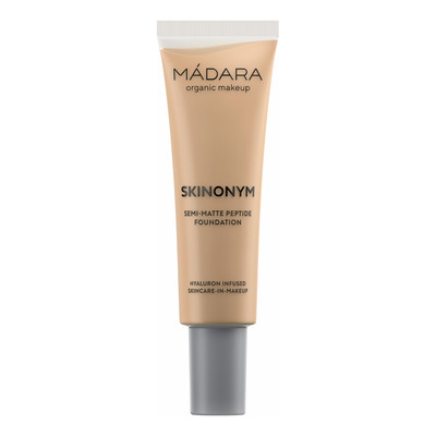 Mádara Skinonym Foundation i fargen Sand gir lett dekning med halvmatt finish.