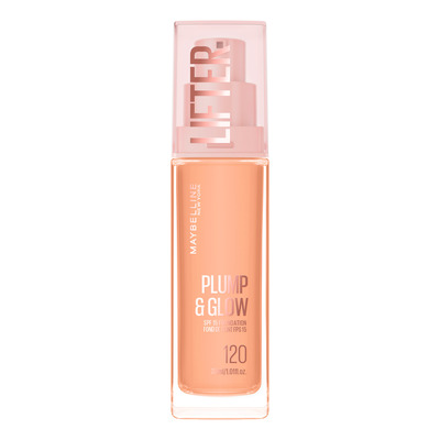 Maybelline New York Lifter Plump & Glow Foundation 120 gir et naturlig og sunt utseende. Den lette konsistensen føles behagelig på huden hele dagen og legger seg ikke i fine linjer. Fargen 120 passer til lys hud med varme eller nøytrale undertoner. Foundationen kan enkelt påføres med fingrene, pensel eller svamp og bygges opp etter behov for mer dekning.