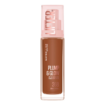 Maybelline New York Lifter Plump & Glow Foundation i farge 368 er en pleiende foundation med middels dekning og en naturlig glødende finish. Den inneholder 2 % niacinamid og hyaluronsyre, som bidrar til å fukte huden og forbedre teksturen over tid. Produktet er ikke komedogent og egner seg for sensitiv hud. Den lette konsistensen føles behagelig og påføres jevnt uten å legge seg i linjer.