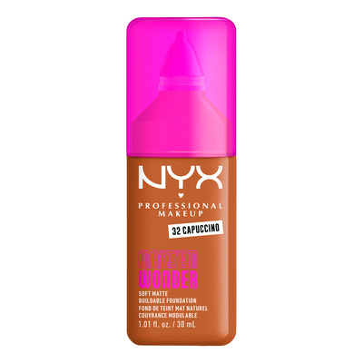 NYX Professional Makeup Make Em Wonder Foundation 32 Cappuccino er en vektløs, byggbar foundation med en naturlig matt finish. Den fukter huden med hyaluronsyre og guaranaekstrakt for en jevn, glatt finish uten å føles tung. Den veganske formelen er svettebestandig, vannfast og smudge-proof - perfekt for langvarig komfort under alle forhold.