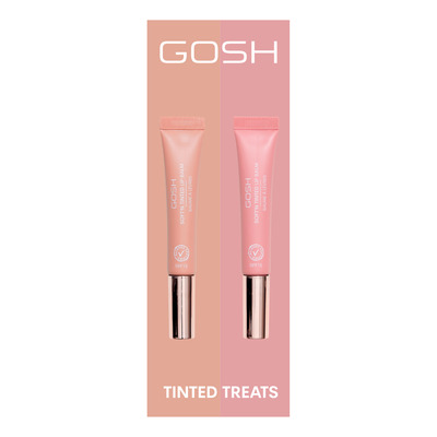 GOSH Tinted Treats er en gaveeske med to fuktighetsgivende leppepomader som gir glans, farge og pleie til leppene
