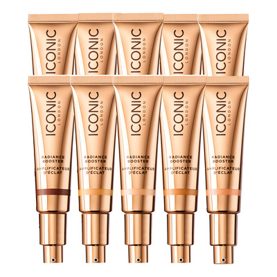 ICONIC London Radiance Booster er en lett, flytende base som gir huden en sunn og frisk glød. Den "gjennomskinnelige" formelen kan brukes alene for et mer naturlig utseende eller under foundation for å skape en subtil, strålende effekt. Den utjevnende Oleo-Gel-formelen bidrar til å jevne ut hudtonen, mens Luminiser Peptides fukter og gir en jevn, glansfri finish.