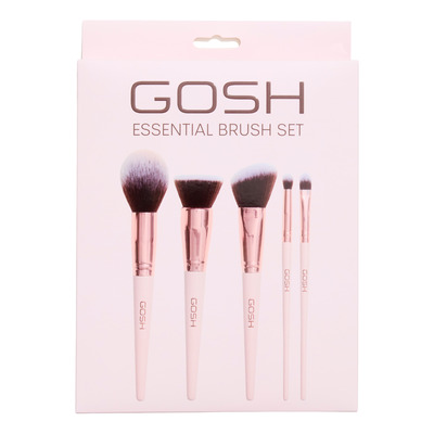 GOSH Essential Brush Set er et praktisk sett med 5 uunnværlige makeupbørster. Settet inneholder børster til pudder, rouge, foundation, øyenskygge og detaljert påføring. Børstene er utformet med syntetiske hår som er myke og lette å arbeide med. Dette gjør dem egnet for alle hudtyper og ulike sminkeformål.