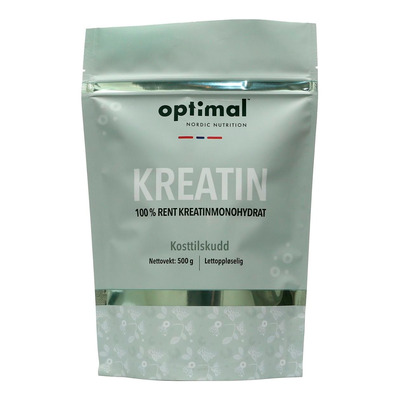 Optimal Nordic Nutrition Kreatin Monohydrat er et kosttilskudd i pulverform med 100 % rent kreatinmonohydrat, uten tilsatt aroma, fyllstoffer eller andre tilsetningsstoffer. Pulveret er mikronisert for bedre oppløselighet i væske.