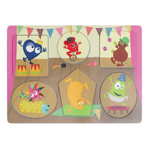 - Består av seks tykke, letthåndterlige puslespillbrikker