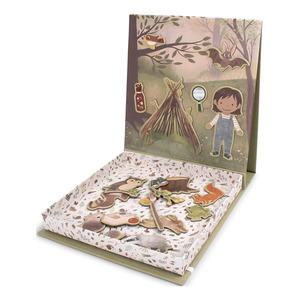 Filibabba Magnetspill med skogstema gir barna muligheten til å skape sitt eget eventyr med dyrefigurer og skogsmotiver. Med 20 ulike håndtegnede og fargerike figurer kan barna leve seg inn i naturen og dikte historier i skogen. Spillet bidrar til å roe ned etter en aktiv dag og er lett å ta med seg overalt. Det er morsomt for hele familien og passer for barn fra 3 år og oppover.