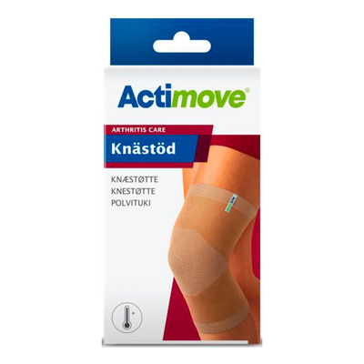 Actimove Arthritis Care Knee Support S beige lindrer smerter og øker bevegeligheten i kneet. Støtten gir kompresjon og stabilitet, noe som bidrar til å redusere hevelse og øke leddbevegeligheten. Produktet er laget med spesielle keramiske fibre som reflekterer kroppsvarmen for å skape en beroligende effekt og fremme blodsirkulasjonen. Størrelse S passer til en kneomkrets på 31-36 cm, og knestøtten er ideell til daglig bruk ved knelidelser som artrose.