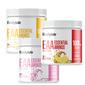 Aminosyrer:, L-leucin, L-valin, L-isoleucin, L-glutamin, L-Arginin, L-lysin, L-methionin, L-tryptofan, L-histidin, L-phenylalanin., Inulin, Surhedsregulerende middel (æblesyre, kaliumcitrat), Aromaer, Antiklumpningsmidler (siliciumdioxid/kiseldioxid), Søtstoffer (sukralose, acesulfam-k), Fargestoff (rødbete)