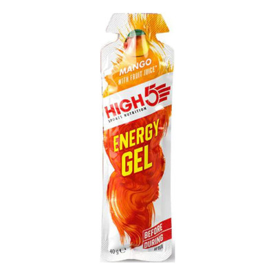 High5 Energy Gel Mango er en energigel til bruk før og under trening. Hver pose på 40 g inneholder 23 g karbohydrater og er laget med ekte mangosaft som gir en lett og frisk konsistens. Gelen er fri for kunstige søtningsmidler, fargestoffer og koffein.