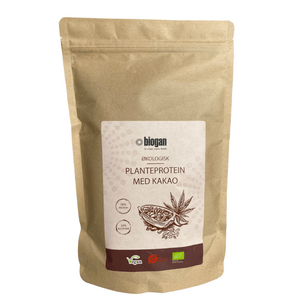 Planteproteinpulver med kakao fra Biogan - økologisk, vegansk og med et naturlig høyt proteininnhold