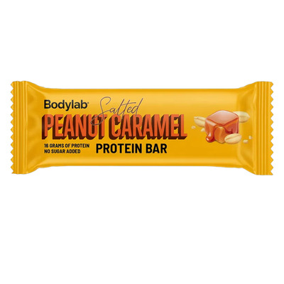 Bodylab Protein Bar Salted Peanut Caramel er en velsmakende proteinbar med en kombinasjon av sjokolade, peanøtter og saltet karamell. Hver bar inneholder 16 g protein og 230 kalorier.